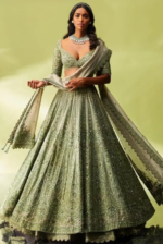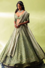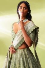 Light Green and Grey Organza Heavy Handworked Lehenga